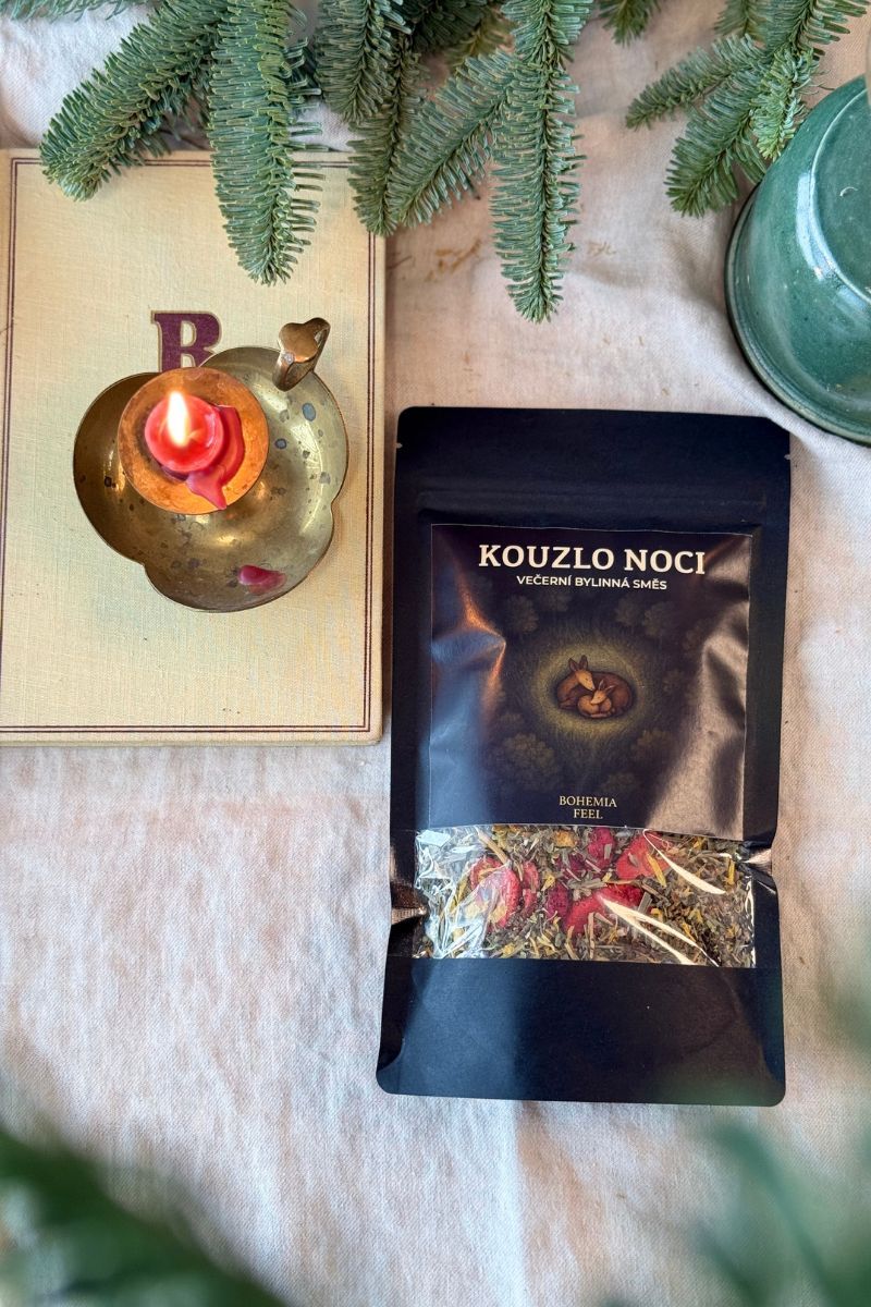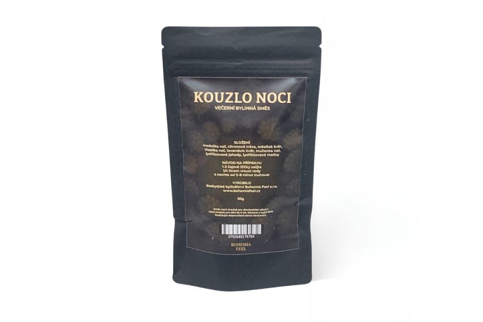 Tak ako v lese všetko stíchne a ponorí sa do spánku, tak je vytvorený aj bylinkový čaj Kúzlo noci. Jemná zmes upokojujúcich bylín, ktoré po generácie odporúčali starí bylinkári, prináša pocit pokoja a spomalenia, keď sa deň chýli ku koncu. Medovka, levanduľa a mučenka spoločne vytvárajú uvoľňujúcu vôňu, ktorá pripomína večerný vzduch v hlbokom beskydskom lese.