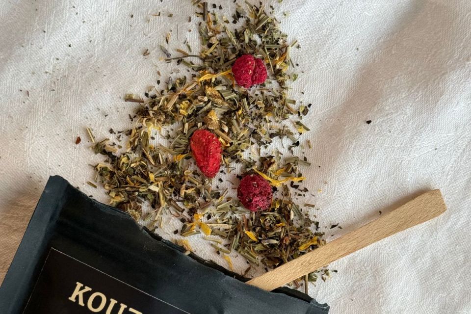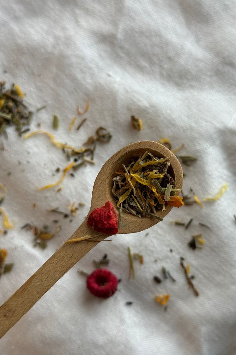 Zloženie: medovka vňať, citrónová tráva, nechtík kvet, ľubovník vňať, levanduľa kvet, mučenka vňať, lyofilizované jahody, lyofilizované maliny