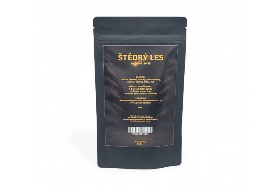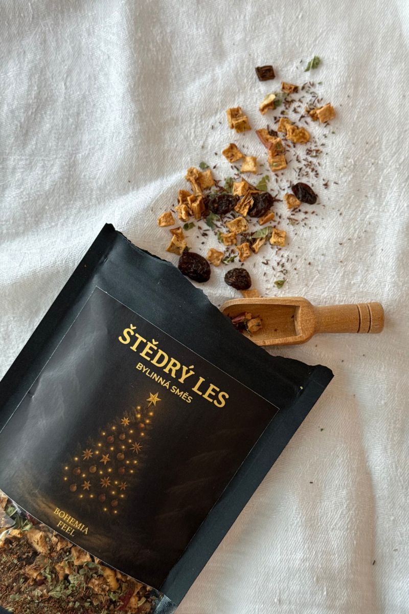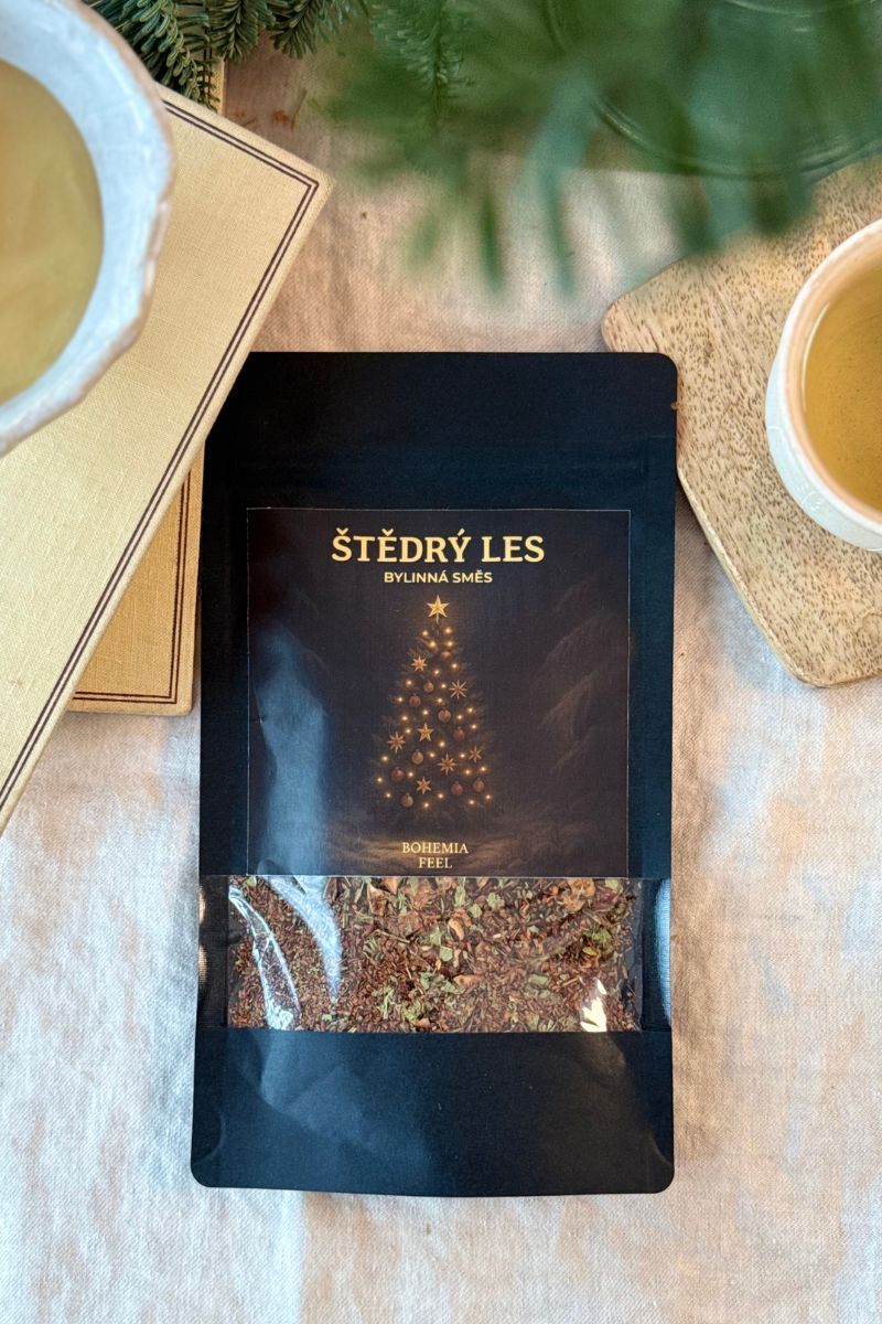 Štedrý les je bylinkový čaj, ktorý v sebe nesie kúzlo zimného lesa a vôňu Vianoc. Predstav si okamih, keď sa medzi stromami rozžiari prvý sneh, vzduchom sa nesie vôňa škorice a celý les sa mení na štedré miesto plné darov prírody. Práve touto atmosférou je inšpirovaná táto zmes – spojenie rooibosu, jablka, vanilky a ďalších bylín, ktoré by s láskou vyberali aj starí bylinkári.