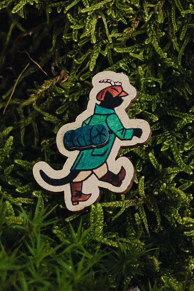 Drevená brošňa Mikeš na cestách zachytáva chvíľu, keď sa známy hovoriaci kocúr vydáva do sveta za dobrodružstvom. Predlohou pre rozprávkového Mikeša bol skutočný kocúr maliara Josefa Ladu, ktorý sa stal inšpiráciou pre celé generácie detských čitateľov. Brošňa nesie jemnosť ručnej práce aj odkaz českej rozprávkovej tradície.