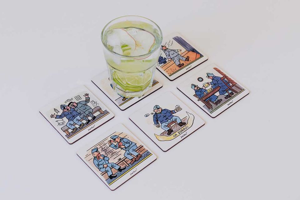 Drevená podložka pod pohár Dobrý vojak Švejk, 6 ks – Josef Lada ©