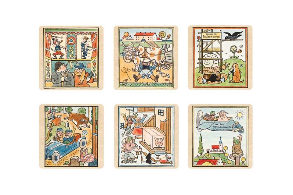 Drevená podložka pod pohár Veselé podložky, 6 ks – Josef Lada ©