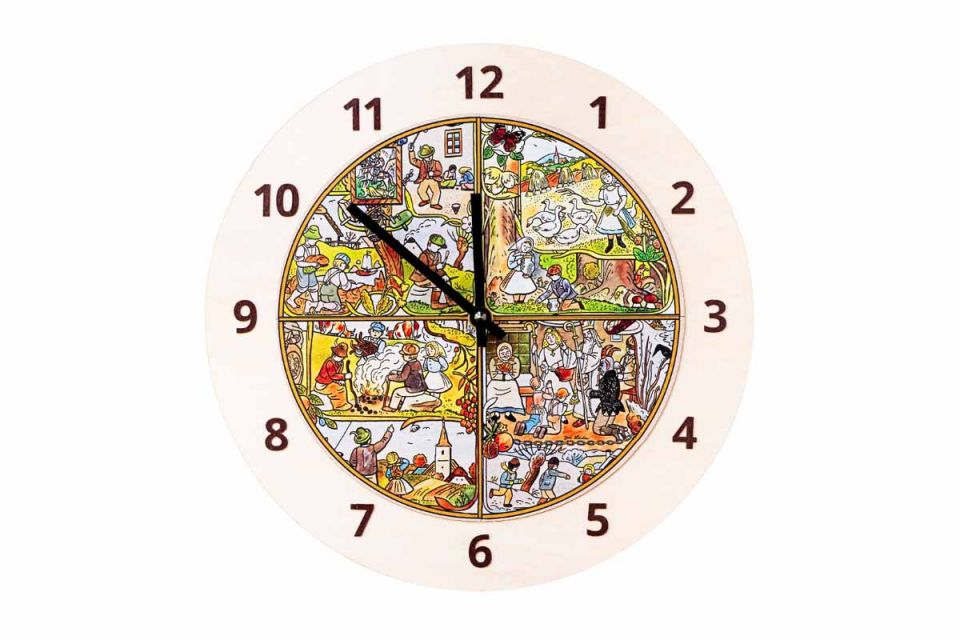 Drevené hodiny Štyri ročné obdobia – Josef Lada ©