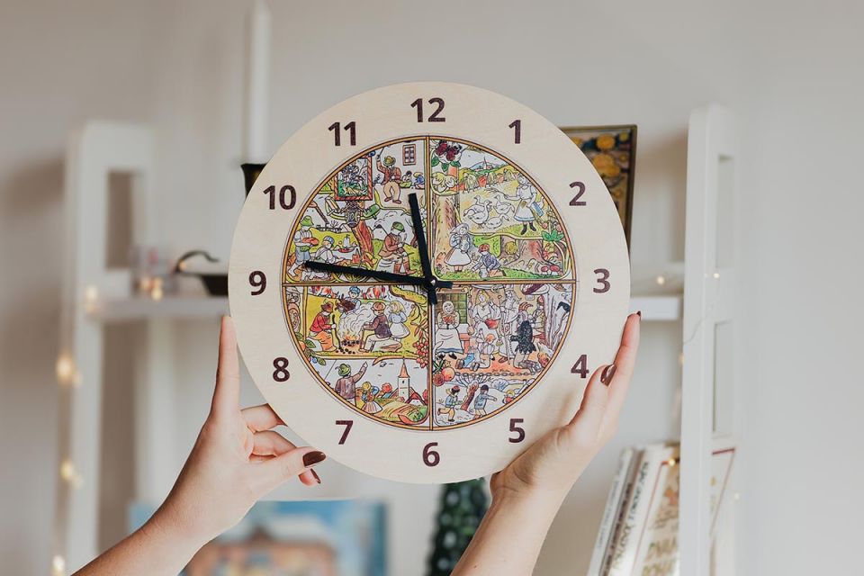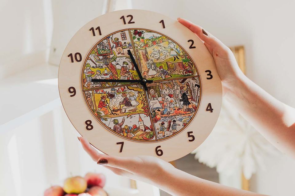 Drevené hodiny Štyri ročné obdobia nesú typické výjavy zo všetkých častí roka tak, ako ich majstrovsky zobrazil Josef Lada. Každá štvrtina ciferníka je ako iná kapitola ladovskej kroniky života – plná farieb, diania aj pokoja. Hodiny, ktoré nikdy neomrzia.