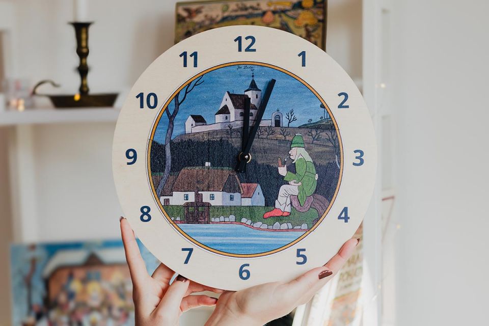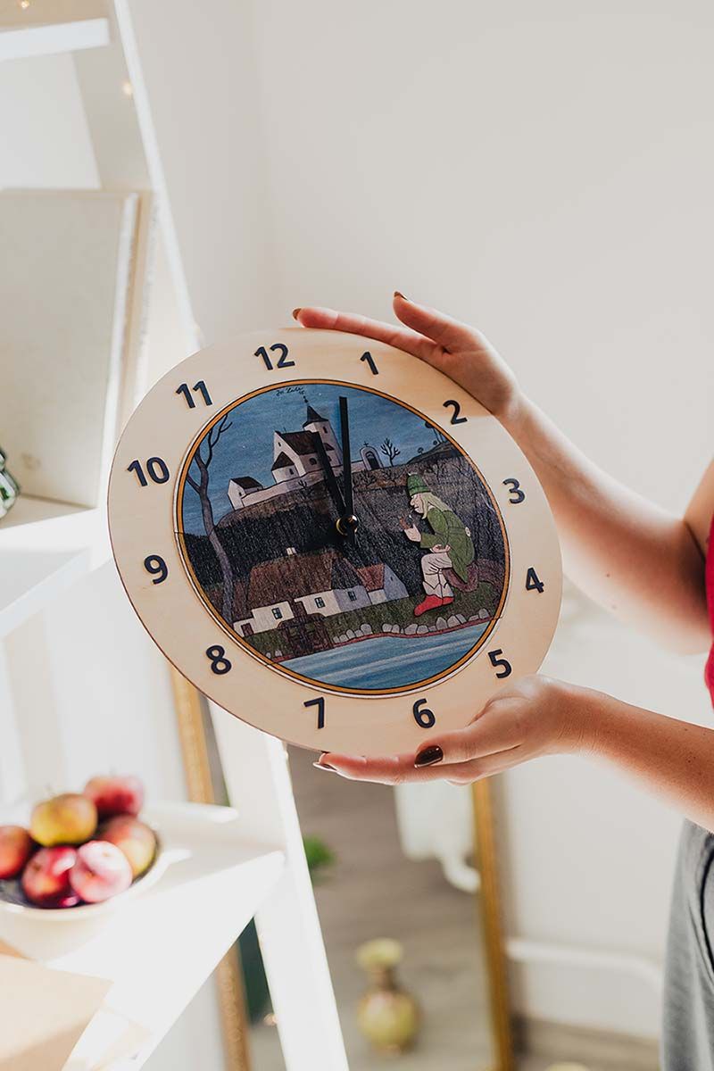 Drevené hodiny s motívom Vodníka prinášajú jednu z najobľúbenejších rozprávkových postáv Josefa Ladu. Tento vodník nie je strašidelný – je pokojný, rozvážny a často fajčí fajku na brehu svojho rybníka. Hodiny s týmto motívom vnesú do interiéru pohodu a nostalgiu.