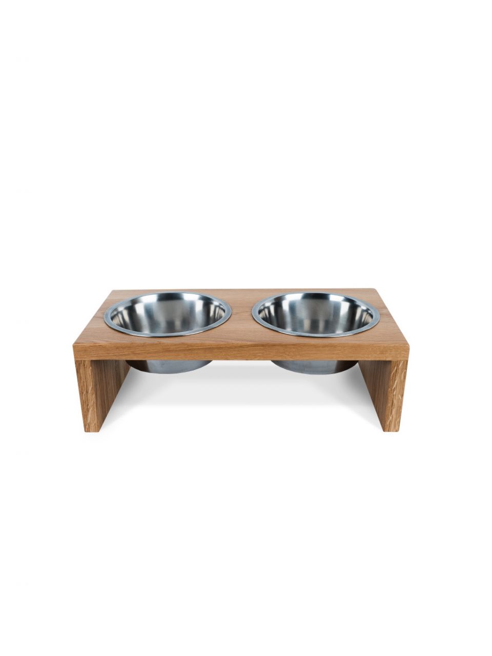 Elegantný drevený stojan pre dve nerezové misky, ktorý spája praktickosť a štýl. Vyberateľné misky sa dajú ľahko umývať v umývačke, a vďaka špeciálnemu tesneniu sedí pevne, ticho a bezpečne, bez poškriabania dreva. Povrch stojana je chránený kvalitným nemeckým lakom, ktorý spĺňa najvyššie bezpečnostné normy. Pre lepšiu odolnosť stojany lakujeme dvakrát – stačí ich len utrieť vlhkým obrúskom a vyzerajú ako nové.