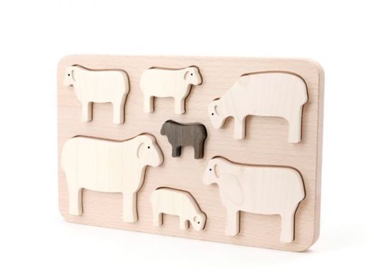 Múdra líška si pre teba pripravila menší hlavolam v tvare ovečiek. Každá má svoje miesto. Ako môžeš vidieť, ovce sa líšia veľkosťou a postavením. Tvojou úlohou bude zoradiť ich tak, aby našli svoje určené miesta. Hračka pomáha dieťaťu rozlišovať rôzne tvary a veľkosti. Je to tiež triedič, ktorý pomáha cvičiť koordináciu ruka-oko a vo výsledku zlepšuje jemnú motoriku dieťaťa.