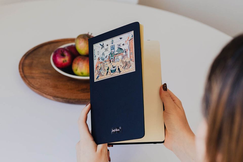Zápisník A5 s motívom Zvieratiek v horárni prináša do vašich poznámok teplo, útulnosť a láskavosť Ladovej zimnej tvorby. Scéna, kde sa zvieratká ukrývajú pred zimou, vznikla ako súčasť jeho tvorby pre deti – s cieľom priblížiť im krásu tradícií a prírody.